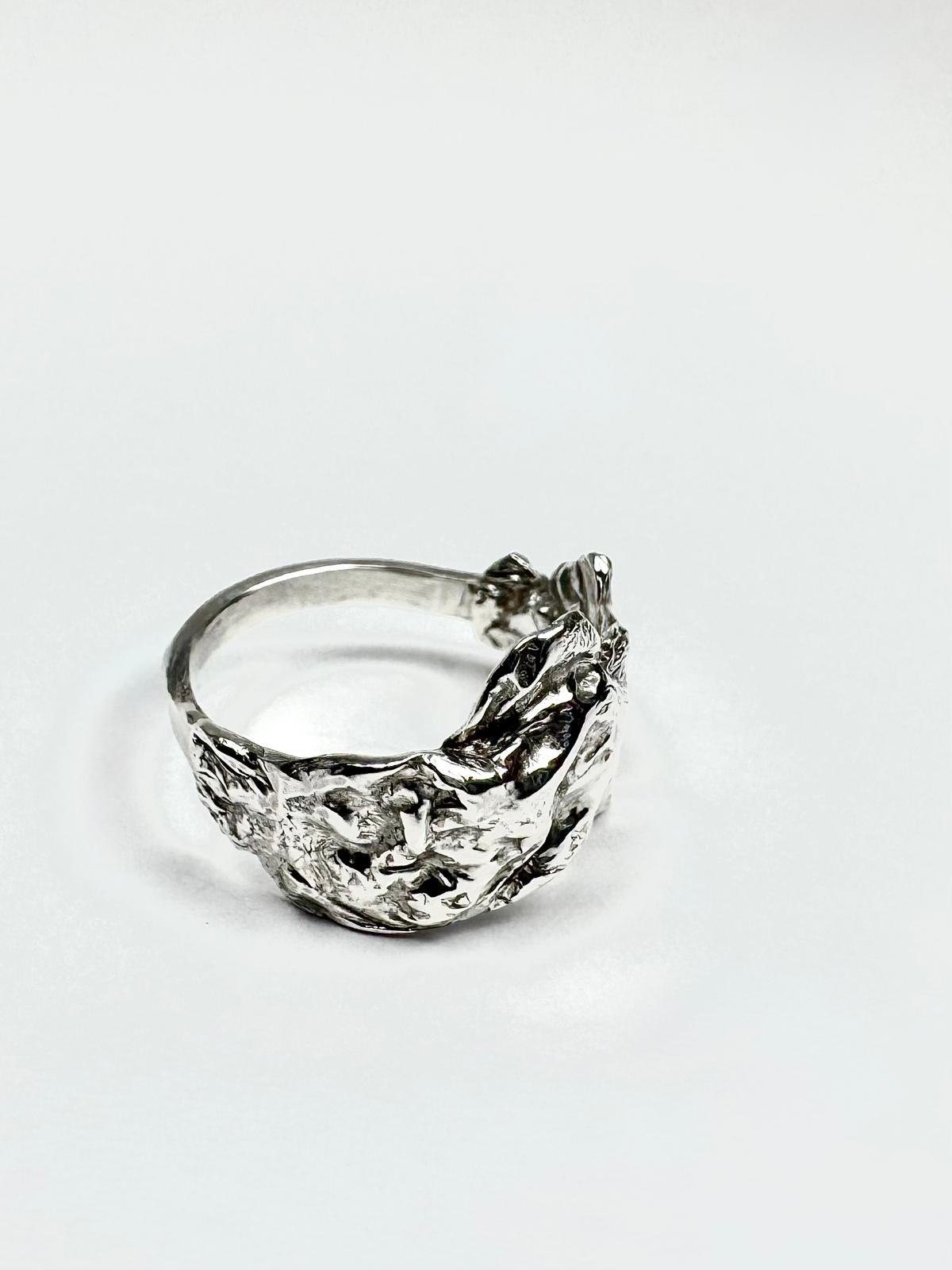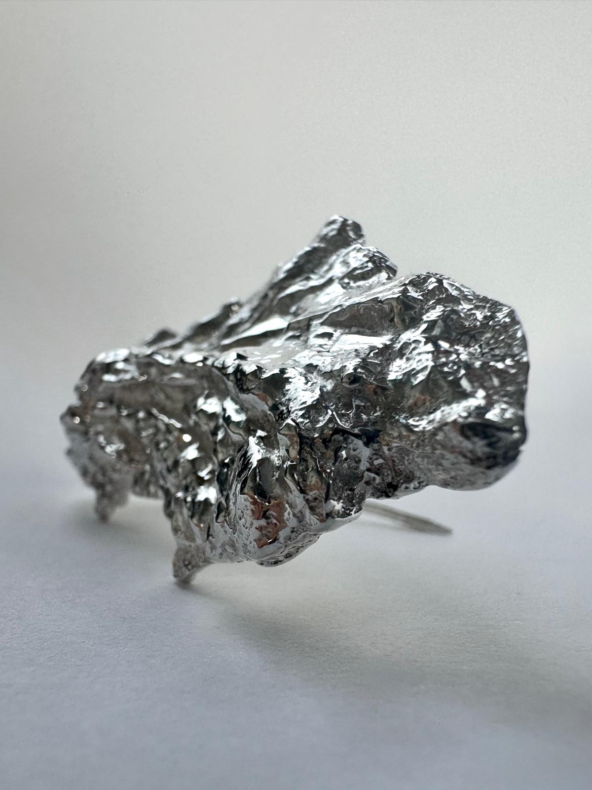 In mijn werk laat ik me inspireren door vormen en bewegingen uit de natuur: takken en bladeren, maar ook stroming, ijspatronen en sneeuw. Door bijvoorbeeld gesmolten zilver in water of sneeuw te gieten ontstaan organische structuren die ik verder verwerk in mijn ontwerpen. Die invloeden zie je terug in de structuren en vormen van mijn sieraden.